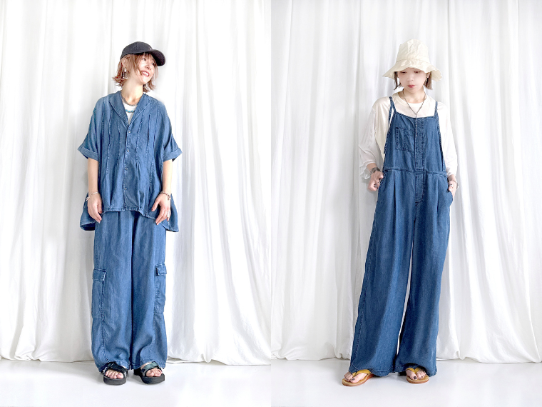 代表アイテムは、汗をかいてもまとわりつきにくいテンセルデニムのカーゴパンツ。カーゴポケットはやや低めの位置に設定し、腰丈のトップとバランス良くコーディネートできるようにする。ルーズストレートのシルエットで、裾にはスピンドルを採用する。税抜き1万6500円。