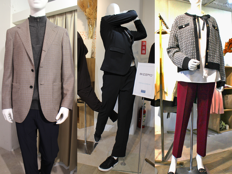 メンズは、ビズスポのアイテムを拡大する。セットアップに加え、スポーティーなベストや仕事にもゴルフにも使える単品のパンツなどを増やす。端境期と暖冬対策としてジャケットとパンツにシャツアウターも加える。