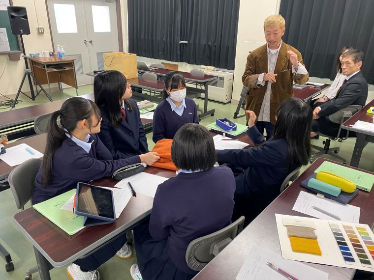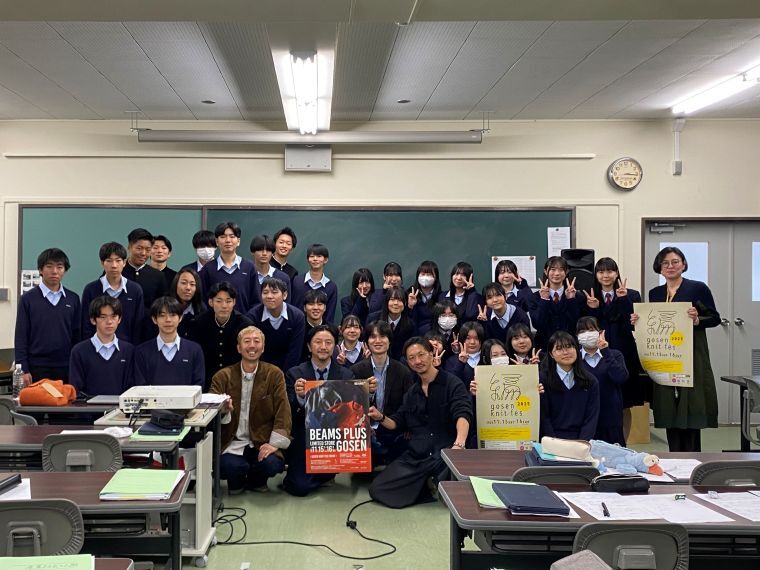 五泉ニットフェス実行委員会と五泉高校が組み、特別講義を企画した。総合学科の「地域の課題解決型学習」と位置付ける教育の一環で、ビームスプラスのほか、実行委員会や五泉市観光協会、地元ニッターが協力して4回の授業で構成。同校の生徒は以前からニットフェスにボランティアとして参加している。昨年までは会期中の手伝いのみだったが、今年から事前に産地や地場産業について学ぶ機会を設けた。