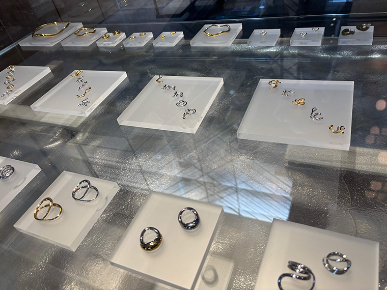 ショップでは、シルバー製の既存のコレクションに加え、昨年からスタートしたファインジュエリーも並ぶ。また、数量限定のオブジェ、青山店限定の「デボーヴ・エ・ガレ」のチョコレートなども販売している。