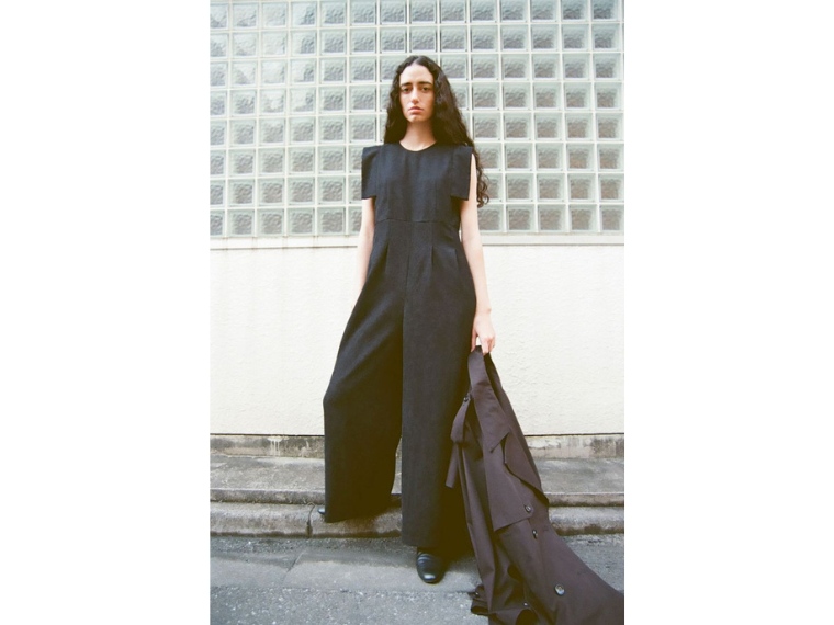 第1弾から復刻したのはスクエアスリーブのオールインワン。肩周りをすっきりと見せつつ、二の腕もカバーできるのが特徴だ。柔らかい細畝コーデュロイを使い、ゆとりのあるシルエットで抜け感と上品なリラックス感を作った。ピンク、ブラウン、ブラックで税抜き2万4000円。