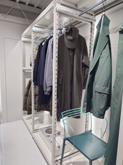 クリエイティブディレクターの南貴之さんが大事にするのは、お客さんに向き合って「コミュニケーションを取る」こと。店内の壁面に、ガラスのウインドーで仕切った展示空間をしつらえた。洋服、ビンテージの椅子やオーディオ、陶器のオブジェなど様々なモノが並ぶ。全て売り物だが、最初は照明が消されて中は見えない。来店客はスタッフに声をかけて、照明をつけてもらい、購入したいものを取り出してもらうコミュニケーションがおのずと必要になる。