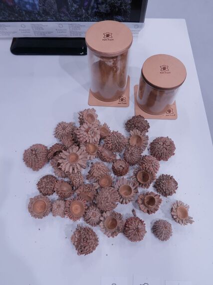 皮革卸の川善商店は26年秋冬向けから、ドングリの帽子の部分(殻斗)をタンニン剤としてなめしたヌメ革「ペリット・クプール」の供給を始める。国産牛の原皮を使い、森に落ちているドングリを活用することで製造エネルギーの抑制につながる。持続可能な物作りを強みに、幅広い用途に普及を図る考えだ。