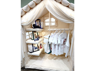 「コッキ」は12月25日まで、ドーバーストリートマーケットギンザ(DSMG)の2階で、アーティストのマサユキキヌタと協業するインスタレーションを開催し、限定商品を販売している。