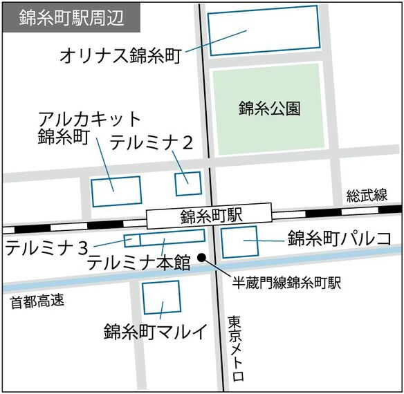 JR総武線錦糸町駅と、東京メトロ半蔵門線錦糸町駅は、東京・墨田区に位置する。2路線を合わせた24年度の1日平均の乗降客数は約20万人と都内でも高い水準だ。JRの北口と南口は都営バスの大きなターミナルとなっており、交通の利便性の高さが特徴だ。35年ごろには、錦糸町駅から徒歩約15分の住吉駅と豊洲駅を南北につなぐ有楽町線の延伸計画も控えており、更に交通の便が向上することが期待される。