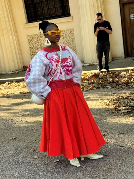 カラフルなボリュームスタイル、そしてシックな色使いの大人な着こなしと、会場周辺は二分化した。オーバーサイズのシャツやフレアスカート、はたまたブロックカラーのドレス。アフリカ系女性はビビッドな色使いにたける。チームカラフルには90年代の原宿系のようなスタイリングも見られた。