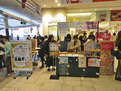 「まちだハッピープロジェクト」は通行客が多いメイン入り口前の駅コンコースで実施し盛況