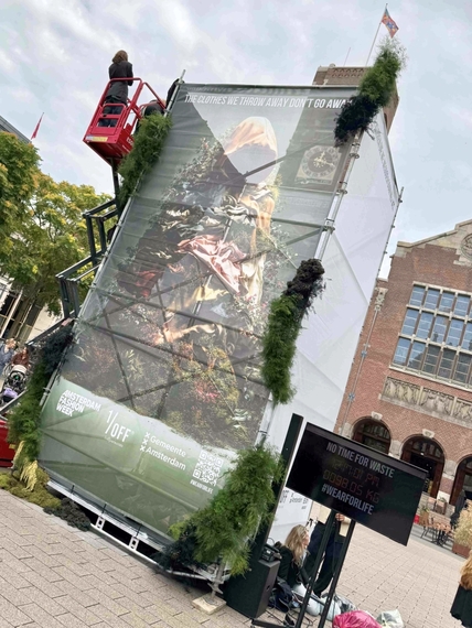 民間出資のファッションウィーク、AFWが初めてアムステルダム市とコラボレーションした。市中心にある広場では「ワンオフウェア・フォー・ライフ」がいらなくなった服を集める取り組みを2日間行った。そびえ立つタワーに衣類を入れると計りが総量をカウント。リメイクに使われるという。