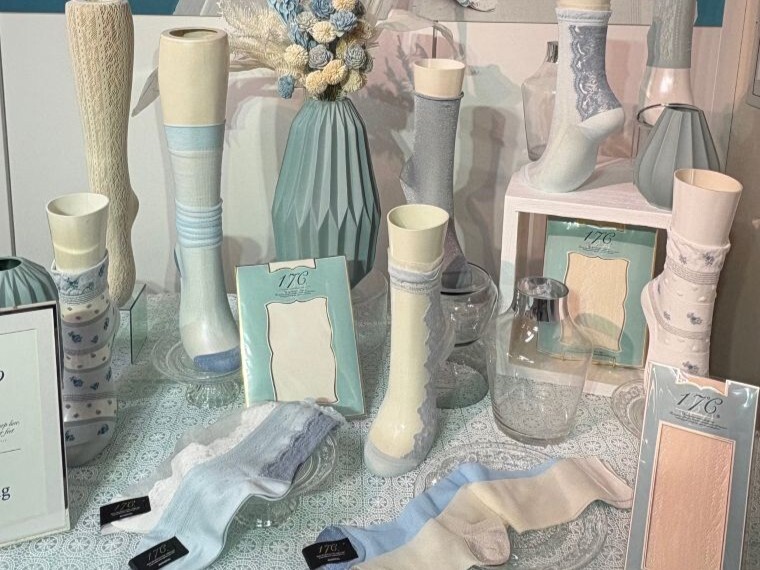 シアーソックスは夏の長期化やファッショントレンドを背景に、3~10月にわたって売れる主力アイテムになった。昨今はロング丈をあえてたるませるはき方が海外から広がりを見せており、人気は今後も続くと見る。