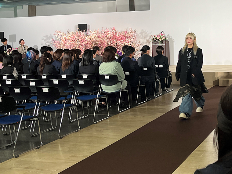 オンワードグループは4月1日、東京都港区のオンワードベイパークビルディングで入社式を開いた。グループ企業が合同で実施し、新入社員231人が参加。それぞれが好きな服を身にまとい、ランウェ―形式で登場した。家族などに向けてライブ配信も実施した。