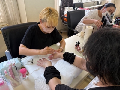 会話をしながら爪の手入れや、メイクなどを実施する(普段のビューティー部の活動)