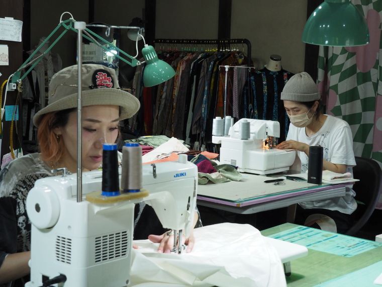 物作りは、自社スタッフだけでなく、長浜の様々な人たちと協力して実現している。農業をしている人、介護をしている人、子育てをしている人たちが空き時間を使って縫製を担う。