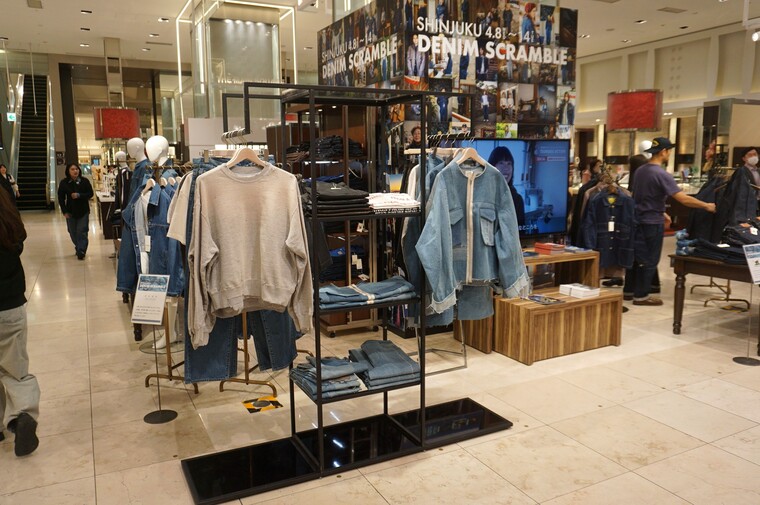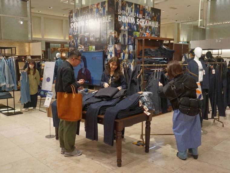 高島屋新宿店は三備産地との協業イベント「デニムスクランブル」を開いている。13ブランドのデニム製品を期間限定販売し、産地企業の認知度の拡大と活性化につなげるのが狙い。高島屋のサステイナブル活動「ツナグアクション」の一環として企画したもので、今年で3回目。会期は4月14日まで。
