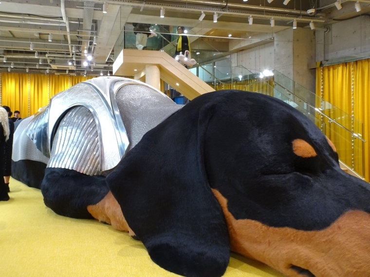 青山、渋谷に続く3店目の旗艦店だが、特に同店だけにある目玉がブランドキャラクターでもあるダックスフントの13メートルの巨大オブジェ「サンシャイン」。アニマトロニクス技術(生物を模したロボット技術)を生かして筋肉や呼吸なども再現したロボットオブジェだ。フォトブースも設けた。