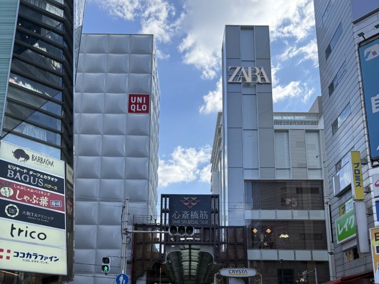 ザラは今年でスタートから50周年を迎える。節目の年に出した新店は、心斎橋筋商店街の北入り口、かつてH&Mが店舗を構えていた場所。向かい側には地下1階~地上4階の5フロアで売り場面積2376平方メートルの「ユニクロ心斎橋」店がある。