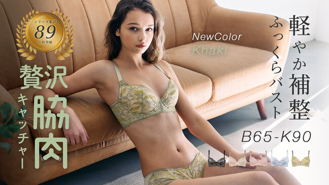軽い着け心地なのに脇肉すっきり!いいとこ取りな欲張りブラ。軽やか補整でふっくらバストになる人気の「贅沢脇肉キャッチャー(R)︎」に爽やかな初夏を感じる新色「カーキ」が登場
