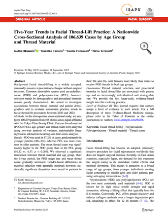 TCB東京中央美容外科世界初かつ最大規模のエビデンスで今後の美容外科領域における臨床判断の一助に。日本全国に104院(2025年10月現在)を展開する美容クリニック TCB東京中央美容外科(理事...