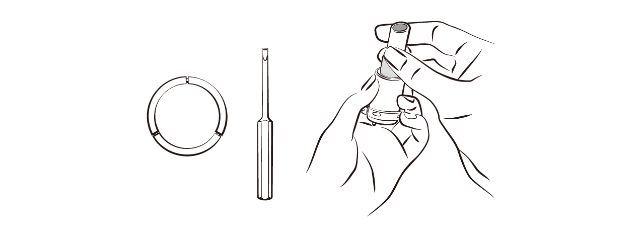 ザ リップはレフィル交換が可能。付属のドライバーを使い、お好みの位置でリングを固定すれば、世界で一つだけのオリジナルリップが完成します。容器とリング、ドライバーは専用ボックスに入ります。