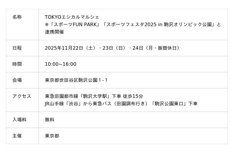 株式会社フラッグ(東京都港区、代表取締役:吹上直子)が展開するセレクトショップブランド「style table(スタイルテーブル)」の「style table 代官山本店」(運営:株式会社Liberty、本社:東京都渋谷区、代表取締役:三上結香)は、2025年11月22日~24日に東京都が主催する「TOKYOエシカルマルシェ」に出店しました。
