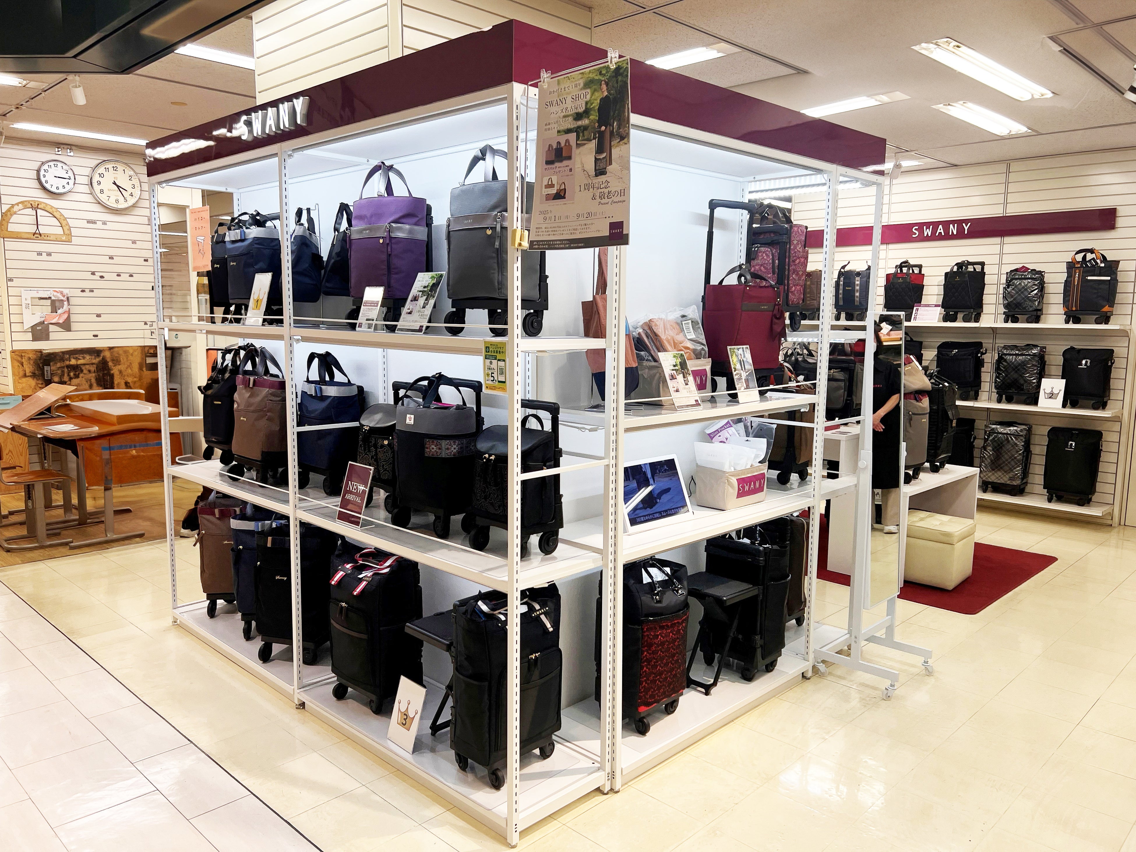 こうしたSWANYならではの“支えるバッグ”の魅力を、実際に体験いただける売場づくりを、全国で進めています。