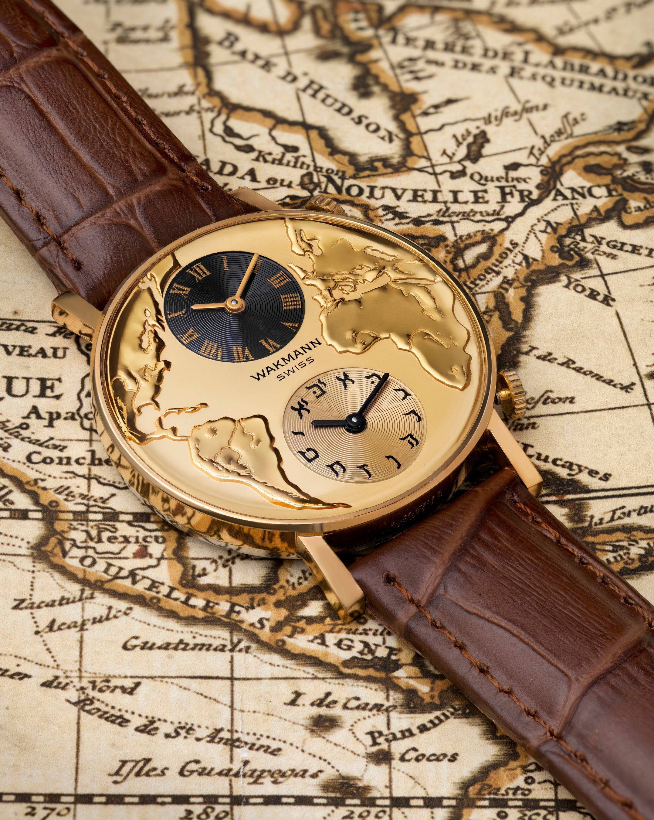 文字盤には立体彫刻であしらわれた大陸が美しく輝く