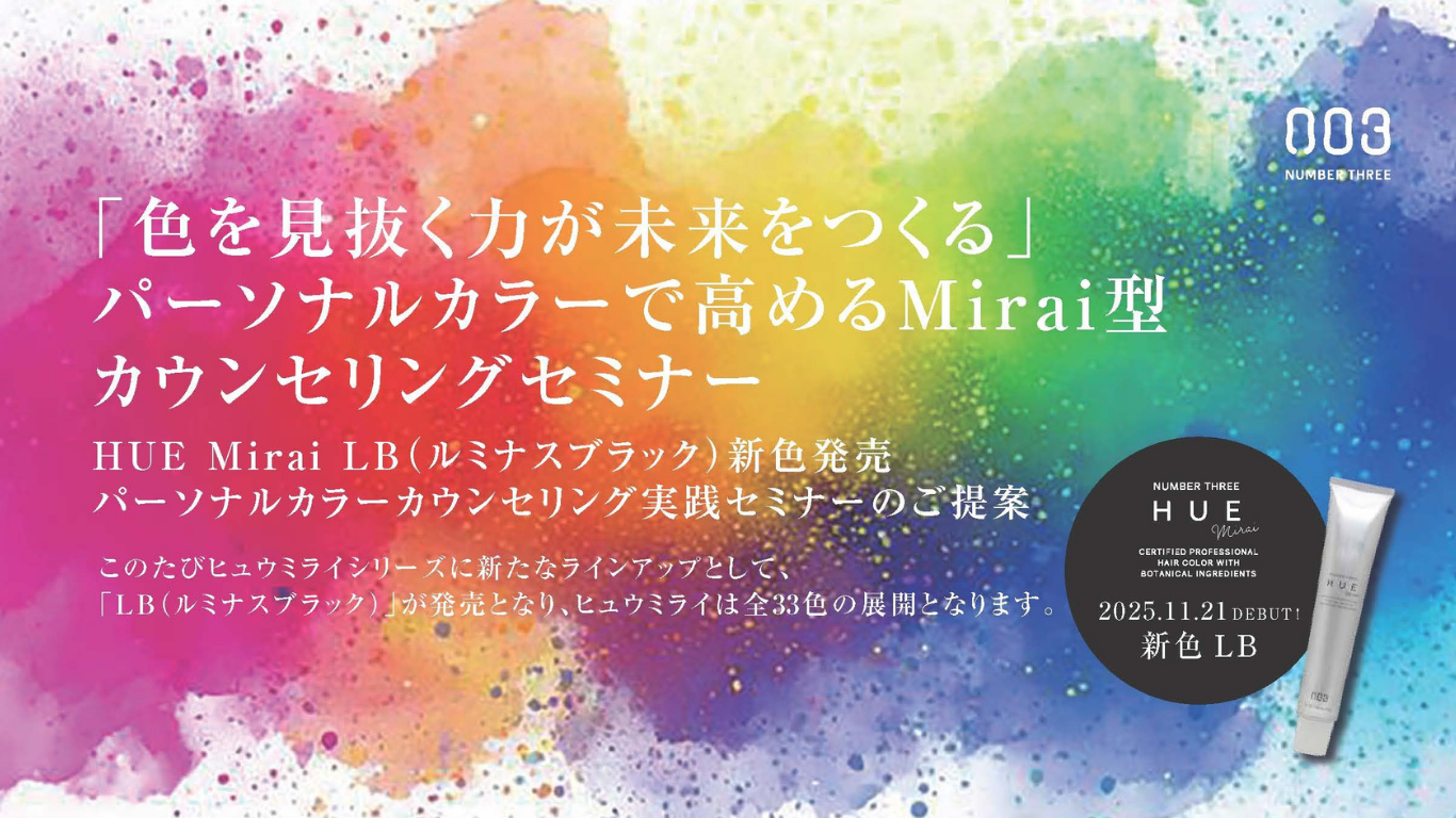 そしてヒュウミライ新色ルミナスブラック※2の発売にあわせまして「色を見抜く力が未来をつくる」パーソナルカラーで高めるMirai型カウンセリングセミナーを開催いたします。