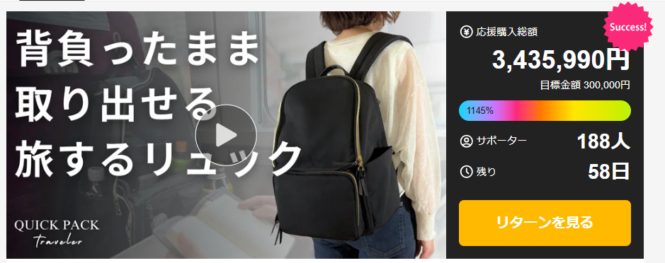 プロジェクト総額3億円を突破、ありそうでなかった製品を通してワクワクと感動をお届けする「NIG(ニグ)オンラインストア」を運営する合同会社NIG(本社:茨城県石岡市、代表:佐々木 亮人、以下NIG)は、累計ユーザー数3.5万人突破のシリーズ最新作、身軽に旅するトラベラーズリュック『QUICK PACK traveler』の先行販売を応援購入サイトMakuakeにて2025年11月18日(火)12時より開始。初日で330万円、181名の申し込みと反響がありました。