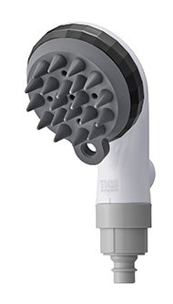 スカルプブラシと一体型の“頭皮ケア専用シャワー”。「スプラッシュ水流」とスカルプブラシが特徴。ファインバブルを含む強力水流とブラシの相乗効果で、頭皮・毛穴の洗浄をサポートします。ブラシで髪をかき分け、水流を頭皮に直撃させます。汚れを洗い流しつつ、ブラシによる物理的な刺激も加わることで血行を促進し、頭皮環境を整えます。ブラシは着脱可能。『カイテキジョイント』が付属し、ご自宅のシャワーとワンタッチで使い分けられます。
