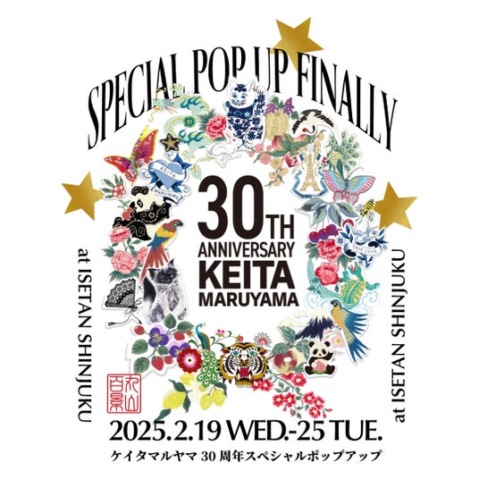 この度、KEITAMARUYAMAは、ブランド30周年特別プロジェクト「丸山百景 KEITAMARUYAMA 30TH ANNIVERSARY」の一環として、2025年2月19日(水)から2月25日(火)まで、伊勢丹新宿店本館1階プロモーションスペースにて「30周年 SPECIAL POP UP FINALLY in 伊勢丹新宿店」を開催いたします。30周年を迎える特別な一年の幕開けとして、昨年2月に伊勢丹新宿店3階でイベントを開催しました。それ以来、全国各地で数多くのポップアップストアを展開してまいりましたが、その総仕上げとして、再び伊勢丹新宿店でフィナーレを迎えます。