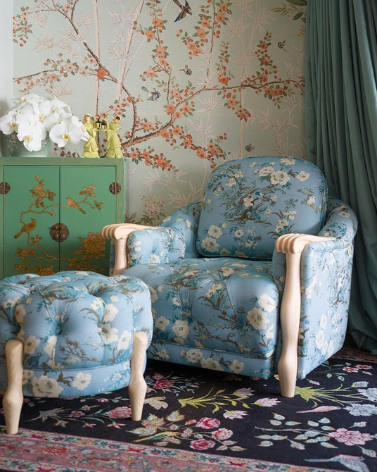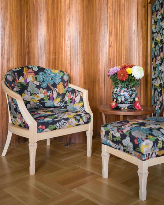 Oriental Gobelins Armchair ベルサイユシリーズ ¥396,000(税込)/Oriental Gobelins Ottoman ベルサイユシリーズ ¥176,000(税込)