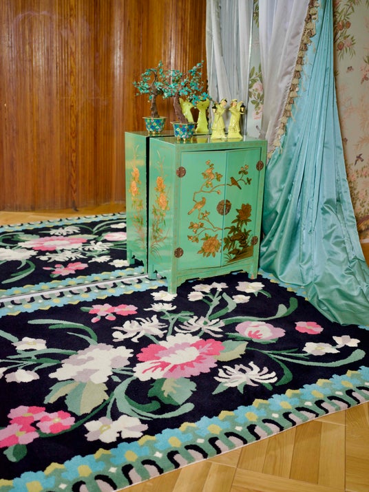 <KEITAMARUYAMA×MIYOSHI RUG>日本でも数少ないハンドメイドラグファクトリーとして知られる「三好敷物」が製作したラグです。三好敷物は、タフティングガンと呼ばれる手持ちミシンを使用し、1点ずつ丁寧に手作業でラグマットを製作しているため大変貴重なアイテムです。KEITAMARUYAMAとのコラボレーションでは、招き猫やドラゴンなどの人気モチーフに続き、今回が第2弾となり、クラシックなフラワーモチーフを用いた大判ラグが登場します。