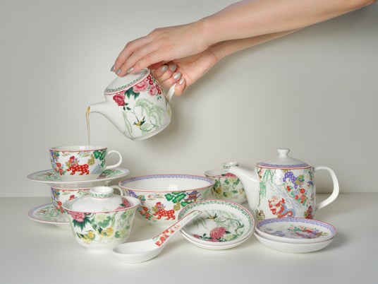 そのNIKKOを愛してやまない丸山が、KEITAMARUYAMAらしいオリエンタルな「シャングリラ」(2021AW「Spirits from 《Shangri-La》」コレクション)と「花鳥」(2005AW「ESCAPE」コレクション)の2柄で制作を依頼し、生まれたコラボレーションです。ティータイムに最適なセットや、丸山自身が実際に使いたいものをもとに特注した小さなヌードルボウルや蓮華など、KEITAMARUYAMAでしか手に入らないアイテムが揃います。
