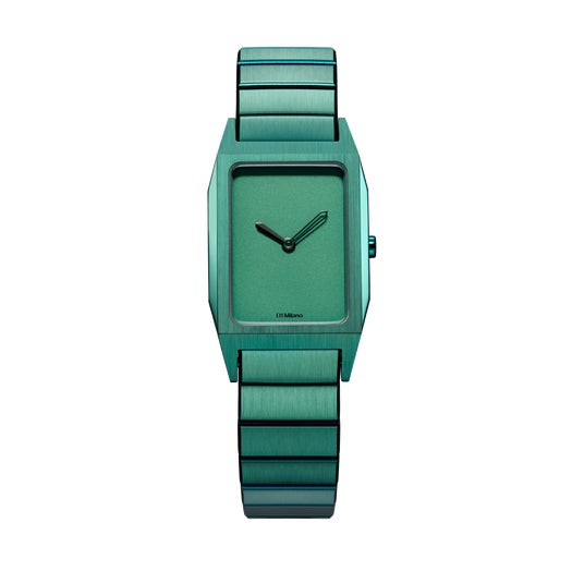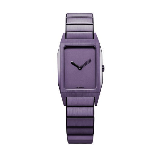 「AURA」は、D1 MILANO初となる長方形ケースを採用し、クラシックなフォルムにモダンな輝きを融合させたコレクションです。ヴィンテージ感あふれるシルエットに、サテン仕上げのステンレススチールケースを組み合わせ、エッジにはポリッシュ仕上げのファセットを施すことで、光を美しく反射するデザインに仕上げました。