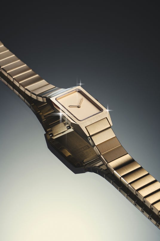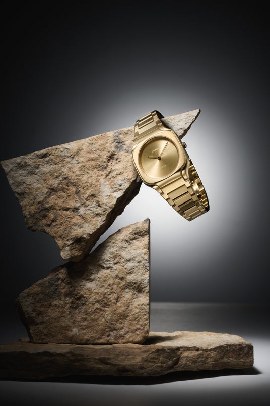 ダイヤルの中央には繊細なサークルブラッシュ仕上げを施し、外周には光の角度によって表情を変える斜めのリングを配置。柔らかく面取りされたスクエアケースは、建築的な精密さとエレガントなフォルムを兼ね備え、腕元に洗練された印象を与えます。