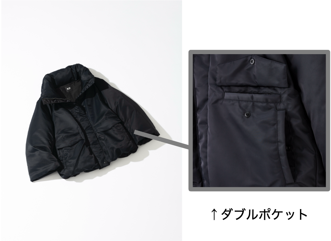 ■ボリュームのある袖とフラットな表面感で、モードに仕上げたショートブルゾン