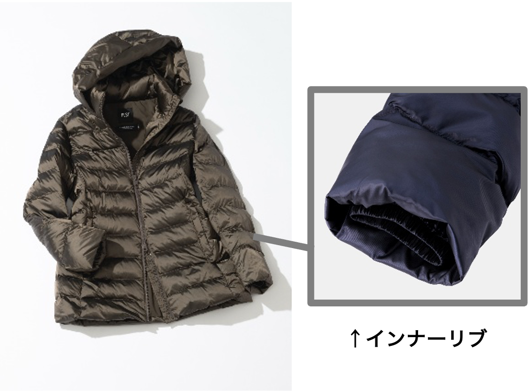 ダウンと比較して綿抜けが起こりにくいのも特長。中に着ている洋服に綿が付着する心配がなく、着用時も快適に過ごせます。