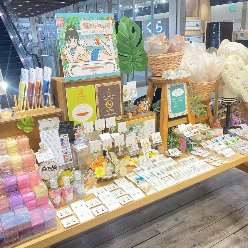 店頭ではビジュアルに合わせて、植物・花モチーフのもの、色鮮やかなもの、パステルカラーのものなどを提案しました。