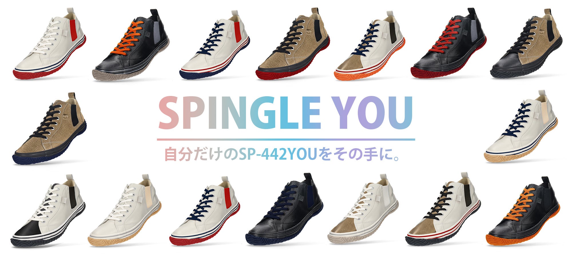 株式会社スピングルカンパニー(本社:広島県府中市、代表取締役社長:内田貴久)は、SPINGLEブランドのトップモデル「SP-442」の10周年アニバーサリー企画として、「SP-442」のアッパーやソールなどのパーツカラーカスタマイズキャンペーン「SPINGLE YOU」を11月1日(土)から11月30日(日)までの期間限定で全国のSPINGLE専門店およびSPINGLE公式オンラインストアにて順次受付を実施します。