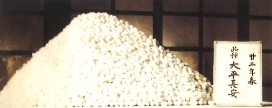 松江製糸場に昭和天皇が行幸された時の原料繭「太平×長安」の陳列(画像提供/片倉工業株式会社)