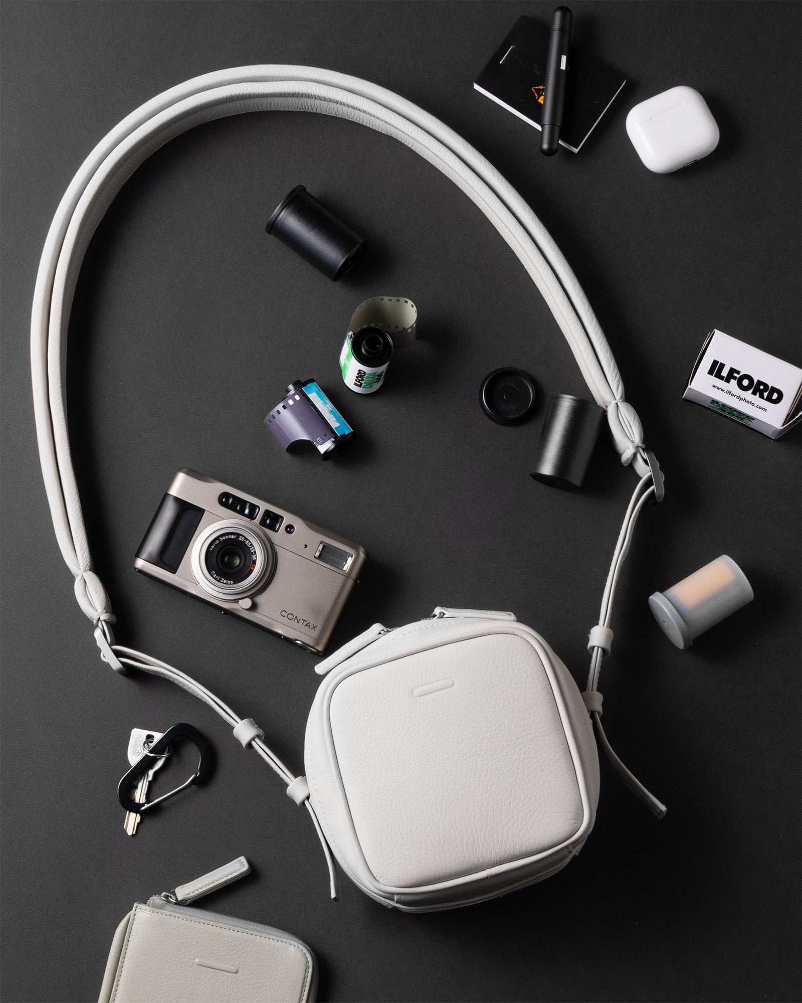 コンパクトカメラやSDカード、イヤフォン、リップなどを収納可能。ボリュームあるストラップと小ぶりなバッグのコントラストがスタイルを引き立てます。進化するポケットサイズのカメラに最適で、身軽なお出かけをサポート。