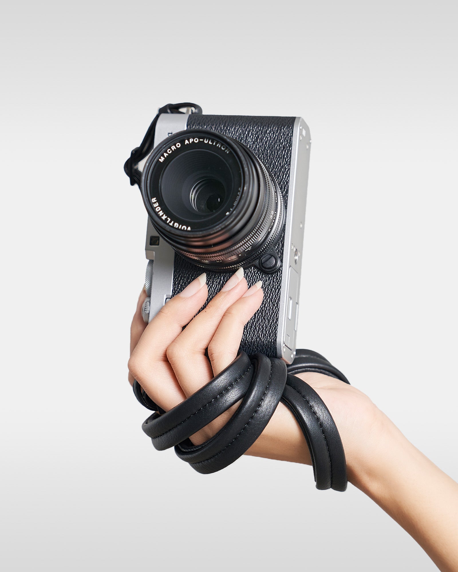 GRIII等のコンデジを美しく持ち歩くために開発した『エッセンシャル カメラストラップ』のハンドストラップモデル。金具やストラップの根本まで同色のデザインにこだわり、ミニマルな美学を詰め込んだハンドストラップです。