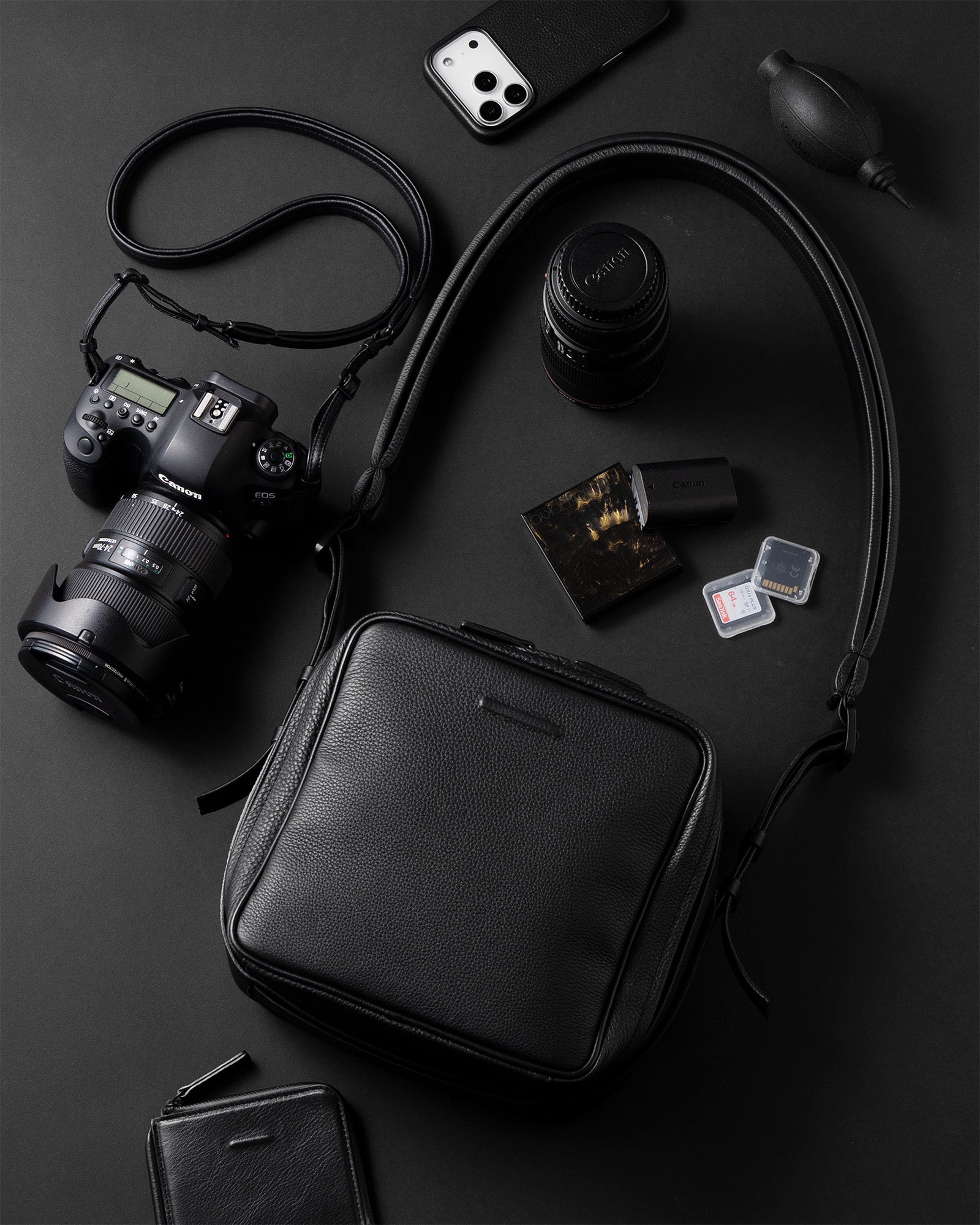クロスボディ型の「ウィークエンドカメラバッグ」から派生し、ユーザーからのリクエストが多かったショルダータイプが登場。ラージとスモールの2サイズ展開で、カメラと必要なアイテムをスマートに収納できます。製品名の通り、週末のカメラライフを美しく支えるバッグです。シーンを選ばないミニマルデザイン