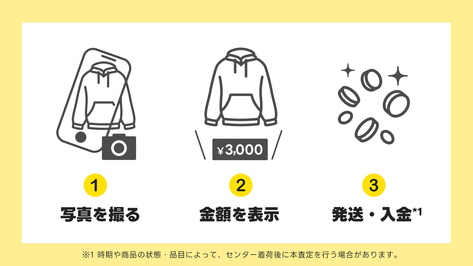 ・商品を撮影するだけで、AIが自動査定し瞬時に金額を提示。発送後すぐに現金化が可能(※1)