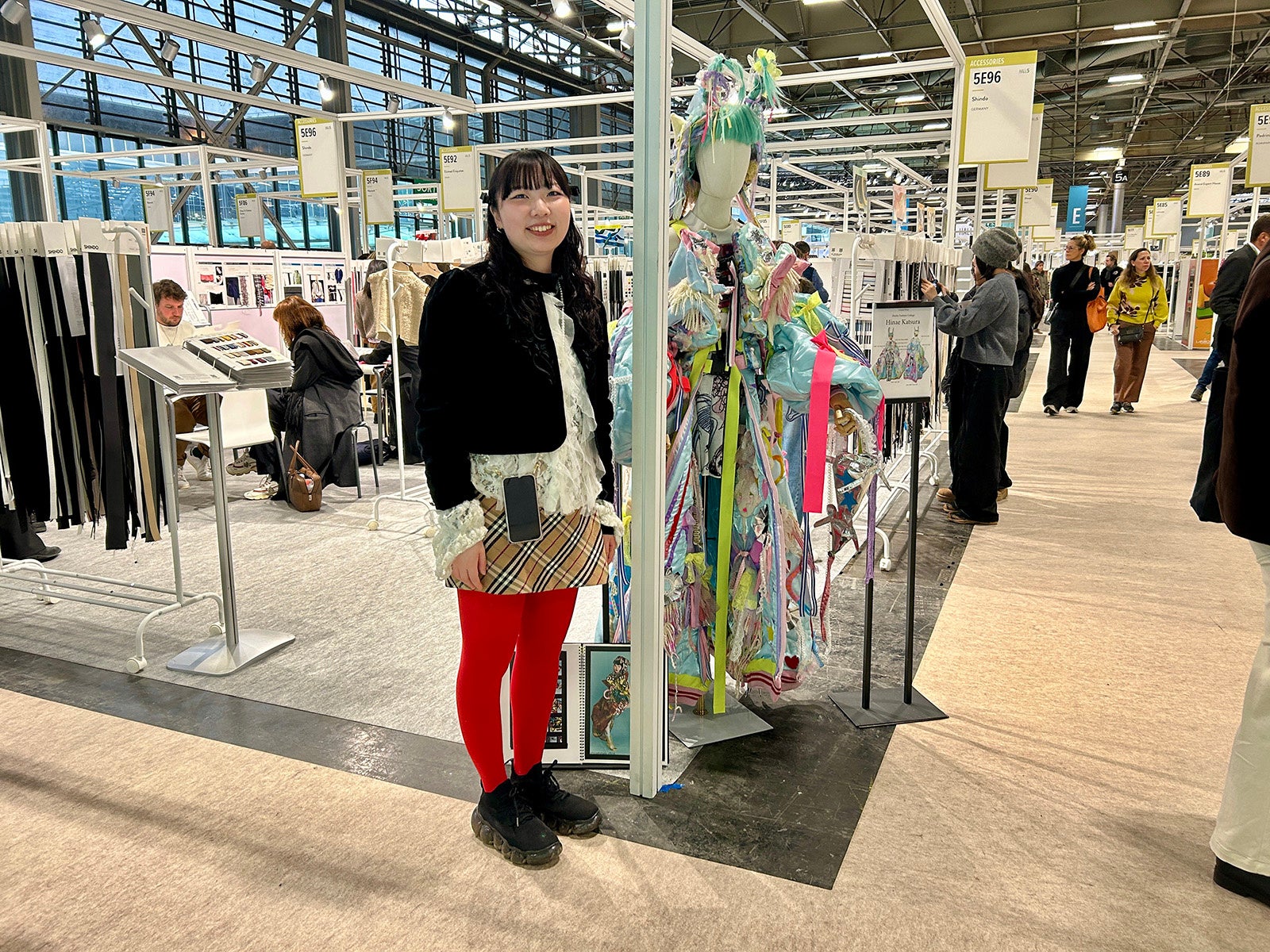 2025年2月のプルミエール・ヴィジョンでの展示風景と学生デザイナー。