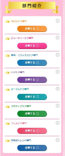 中からケア部門/ビューティーケア部門/睡眠・リラックスケア部門/ヘアケア部門/オーラルケア部門/アクティブケア部門/フェムケア部門/次世代トレンド部門