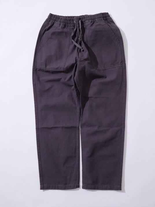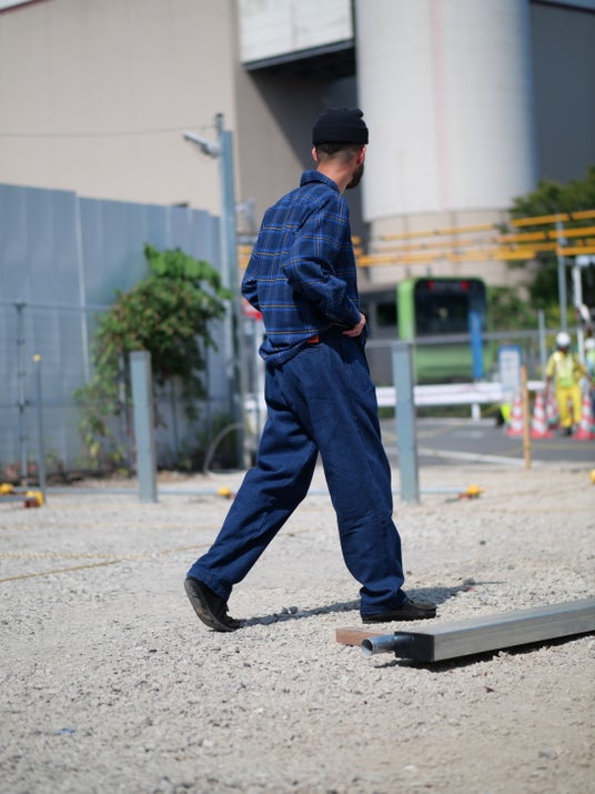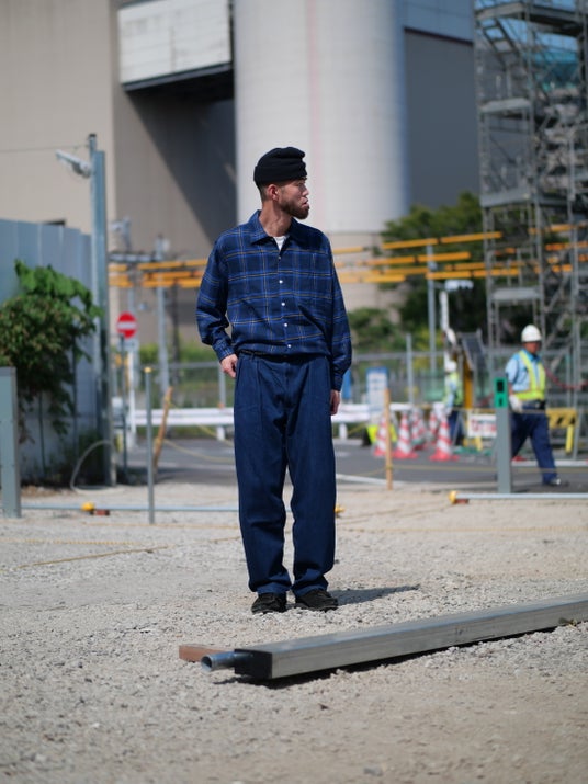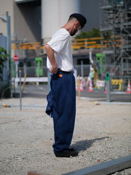 しっかりとした重厚感を備えながらも、ワークブランド定番のダック地と比べると軽快で、デイリーに取り入れやすい仕上がり。さらにリベットが見えにくい設計によって、ワークウェアにはない洗練を演出しています。無骨さと上品さが絶妙に共存した一本です。