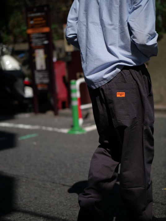シルエットは“やや太めのストレート”。シェフパンツ本来の無骨さを残しながらも、どこか洗練された雰囲気を備えており、汎用性の高さは抜群です。