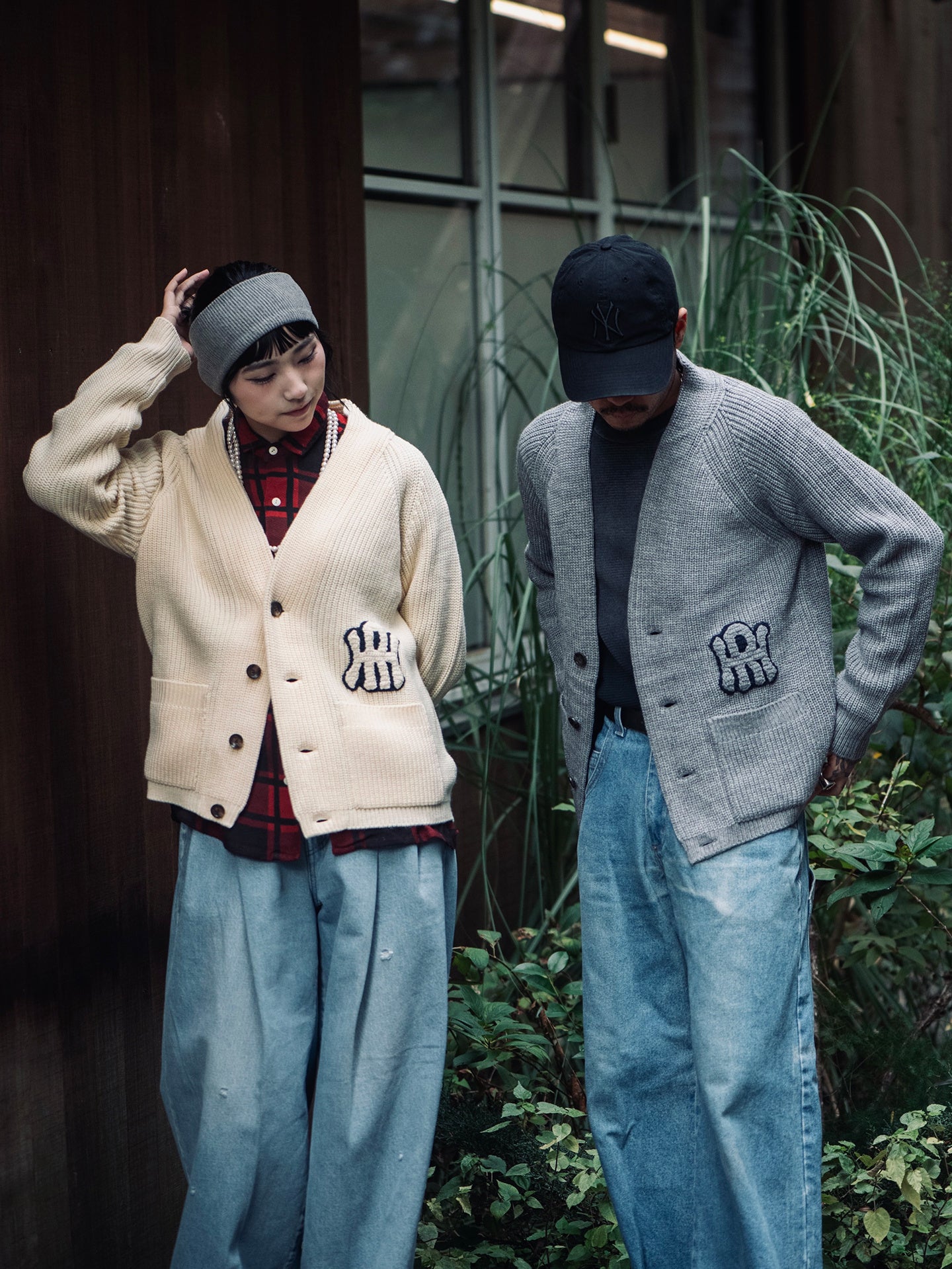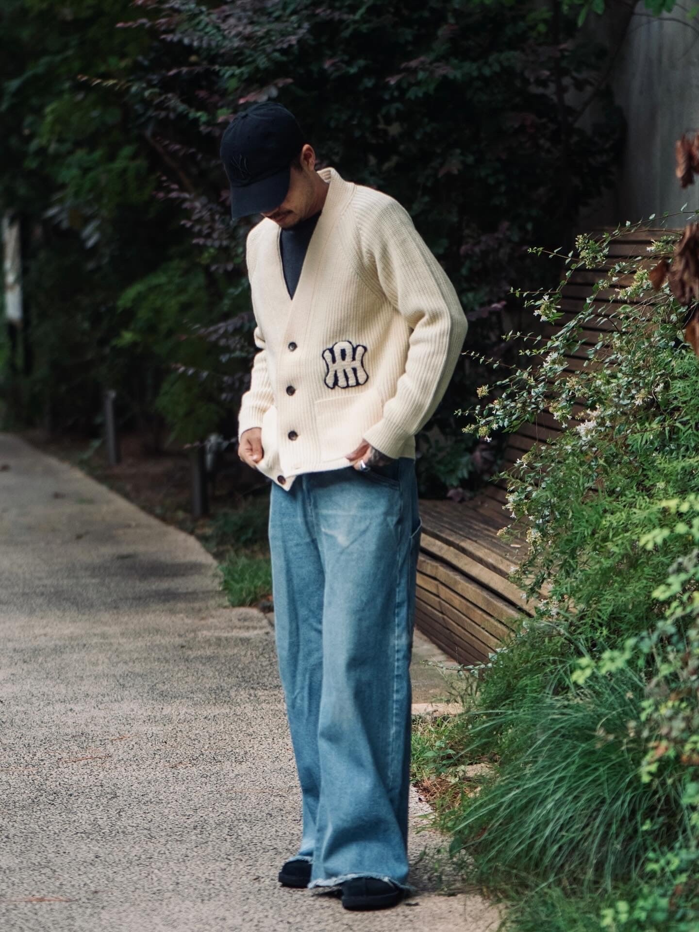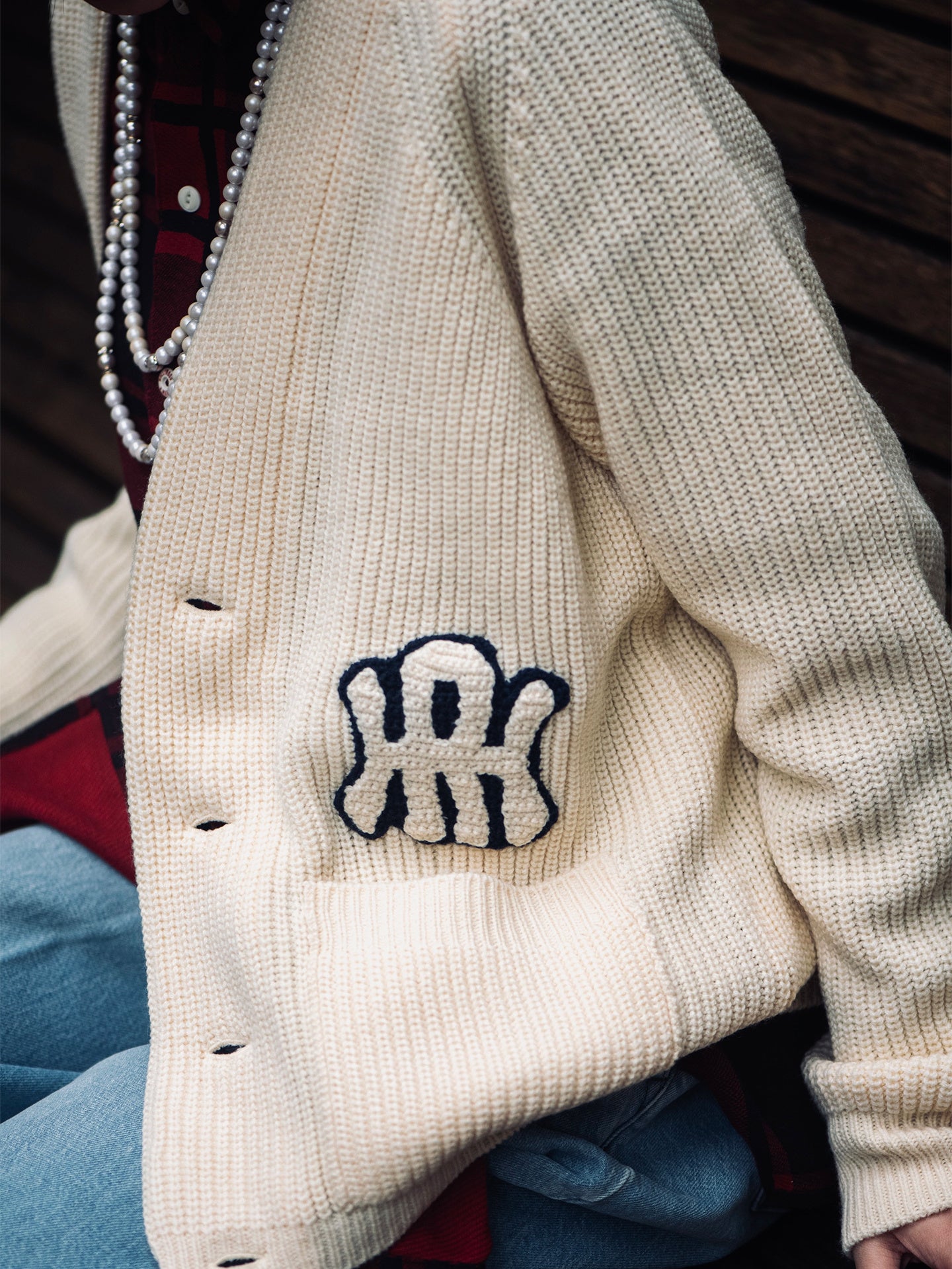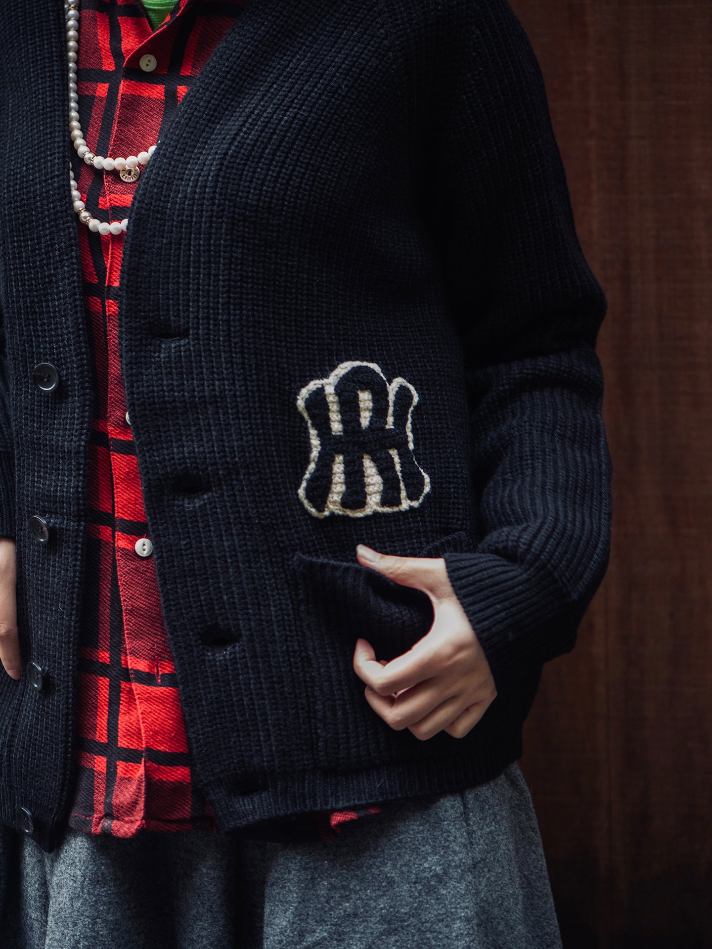 いつの時代にも着用できるモノづくりを展開する〈HOLLYWOOD RANCH MARKET〉から、ブランドのアイコニックな「HR」ワッペンをレタード調にあしらった新作ニットカーディガンが登場。