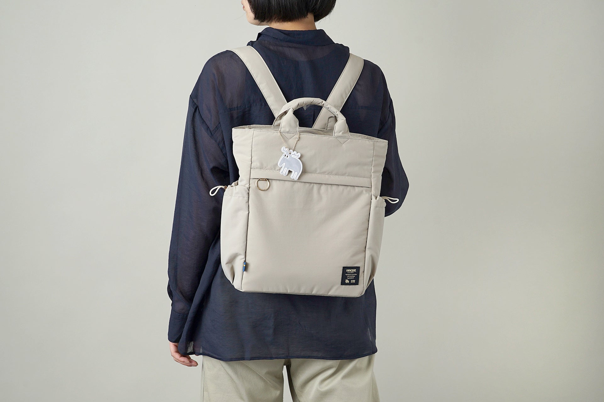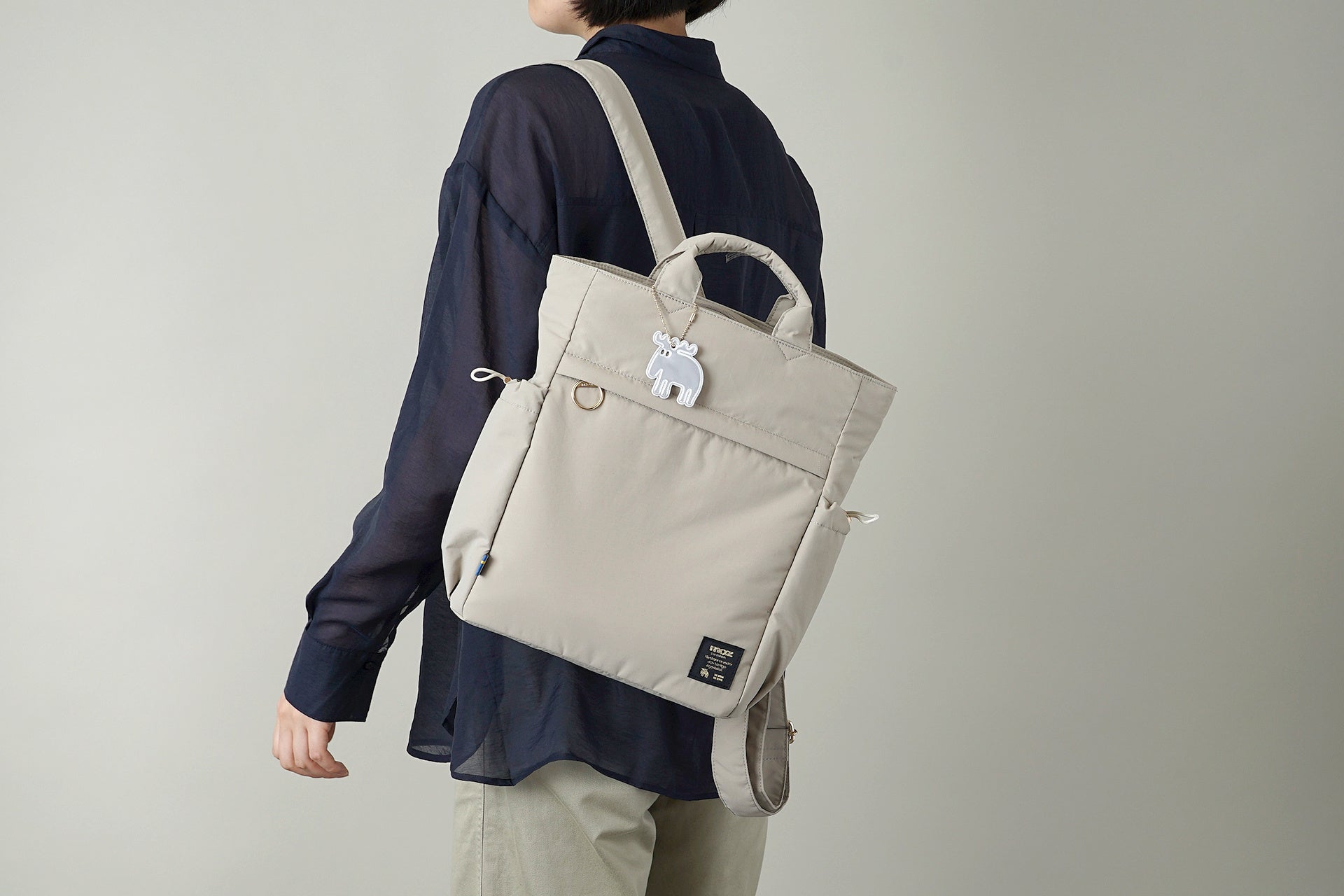 さらに、手触りの良い素材には軽撥水加工を施し、雪や雨の時でも安心してお使いになられます。また、夜間の安心を支えるリフレクトチャームも付属。機能性と安心感を兼ね備えつつ、金糸刺繍のロゴワッペンがアクセントとなる"大人カジュアル"なデザインで、毎日の外出を快適かつ上品にアップデートします。