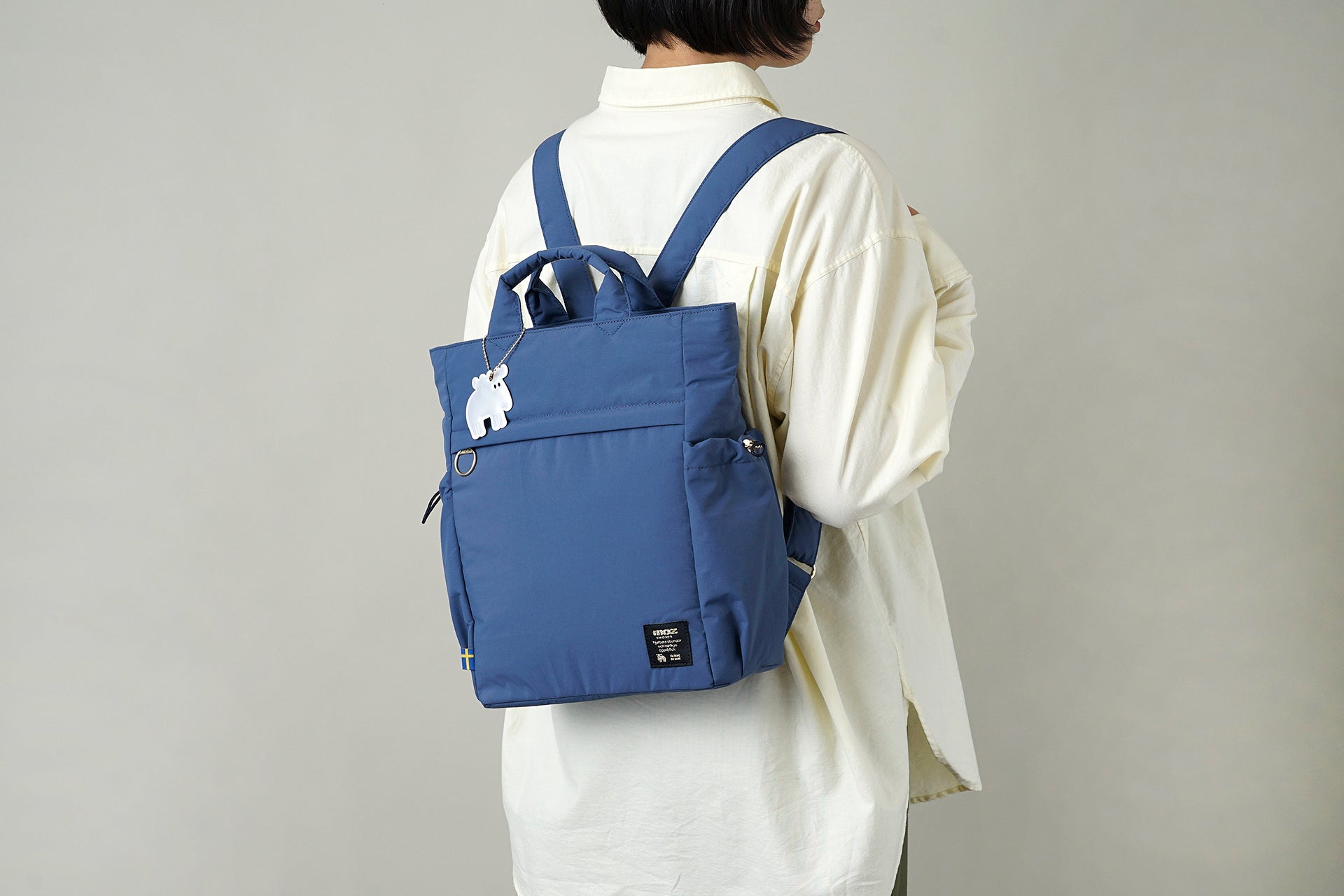ショルダーストラップにも本体と同じボンディング生地を採用。肩にかけたときの馴染みも心地よい仕上がりです。